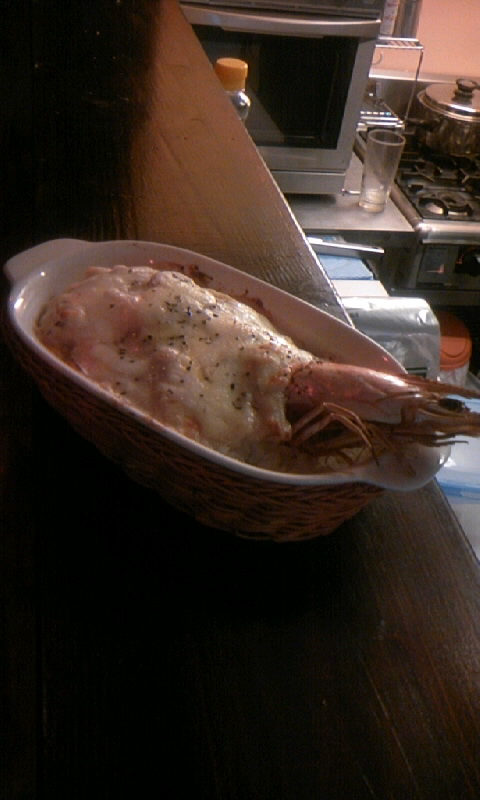 県内の漁師さんが捕ってきた海老とイカのドリアに松阪産幸水梨のチーズヨーグルトサラダつき。
